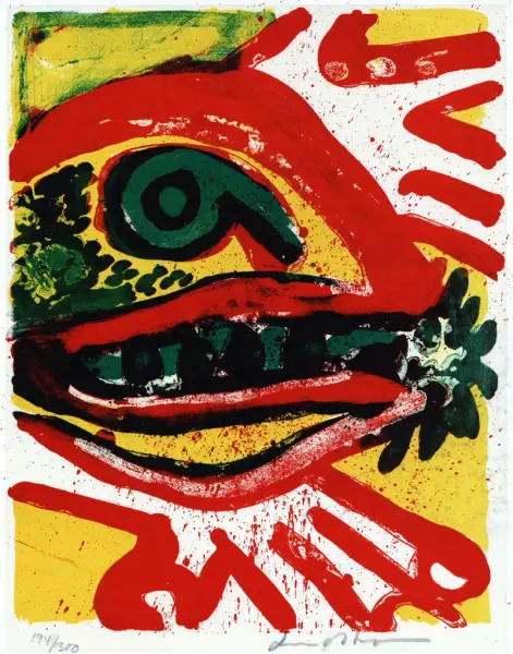 Bildtext: Överraskad, litografi av Bengt Lindström, 1960-tal.
