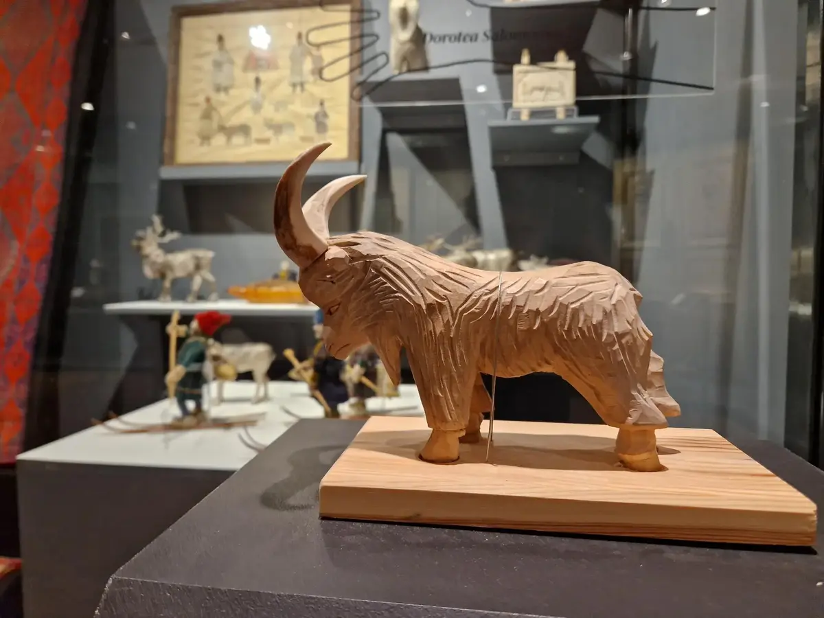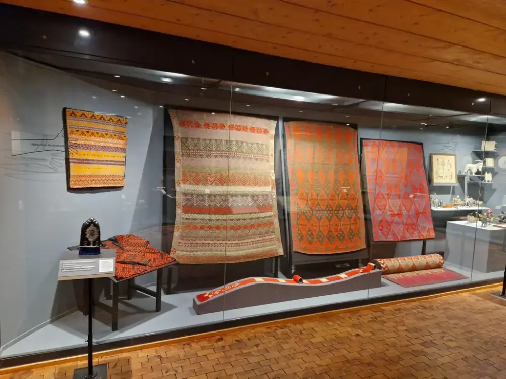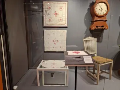 För att skydda föremålen ligger de bakom glas. Därför finns istället taktila tolkningar av några av de slöjdade föremålen, så du kan känna på olika material, former och tekniker. Här finns också korta texter på punktskrift.