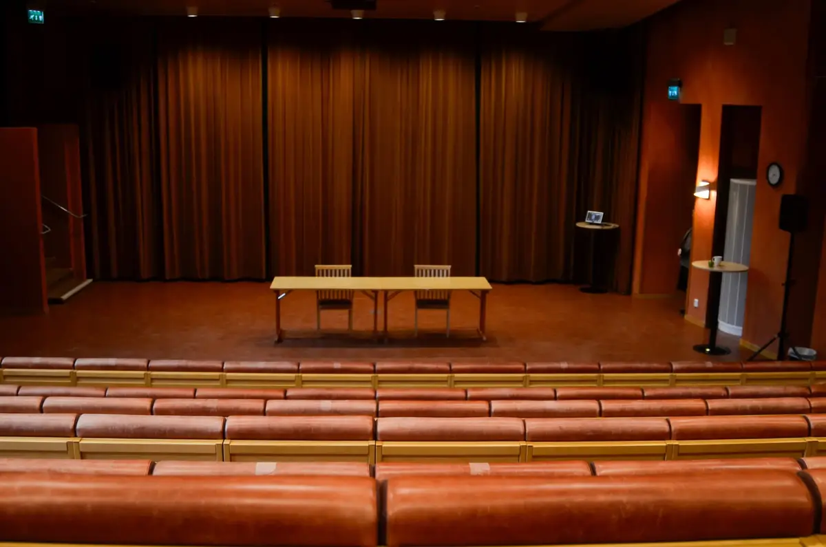 Det finns även generöst med utrymme framme vid scenen där bord och stolar kan ställas fram för panelsamtal, diskussionsgrupper, workshops med mera.