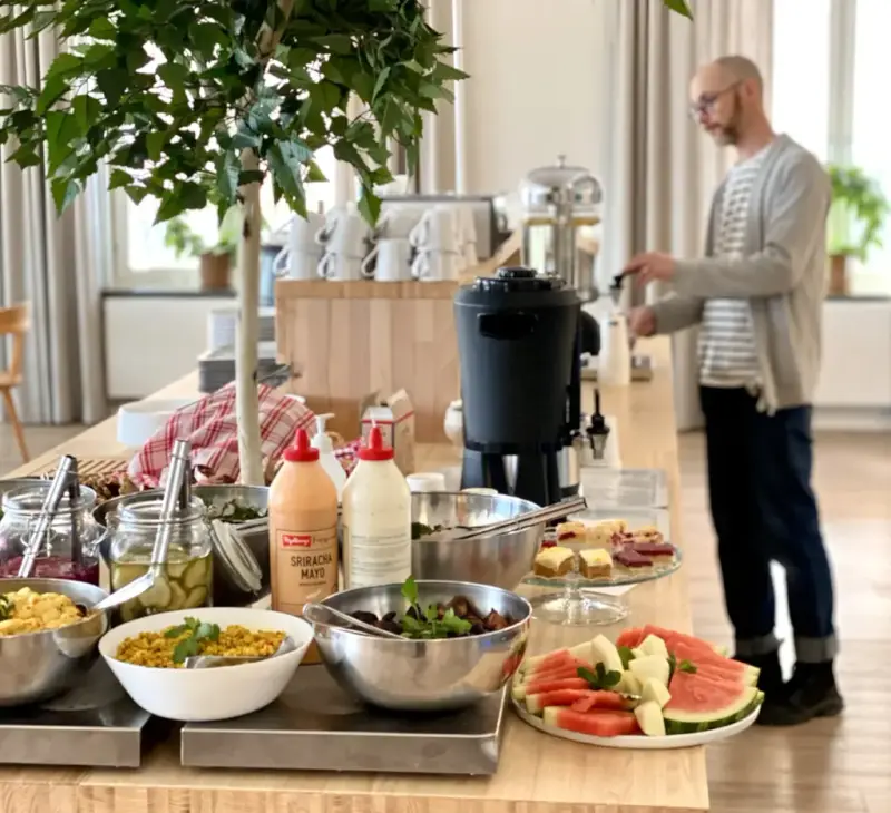 Från och med lördag 22 november kommer kafélokalen vara öppen kl. 11.00–15.00 med självbetjäning. Där kan du på egen hand köpa fika samt fräsch färdigmat, exempelvis sallader. En upphandling av ny aktör genomförs nu.